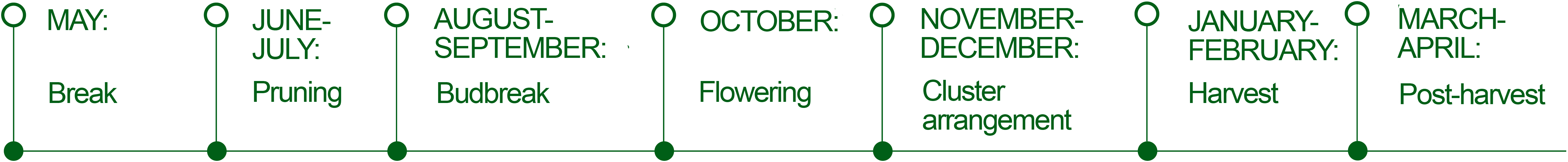 Table grape production is a year-round process, beginning in May with pruning and ending in April of the following year with post-harvest.